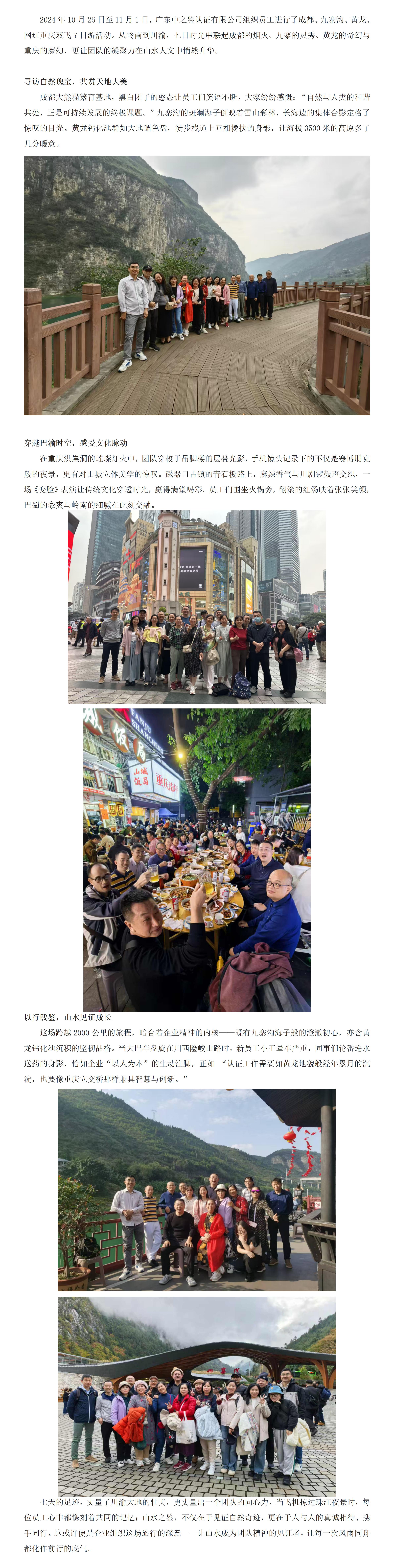 广东中之鉴认证有限公司成都、九寨沟、黄龙、网红重庆双飞7日游活动圆满结束